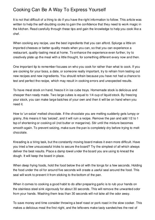 Cooking Can Be A Way To Express Yourself